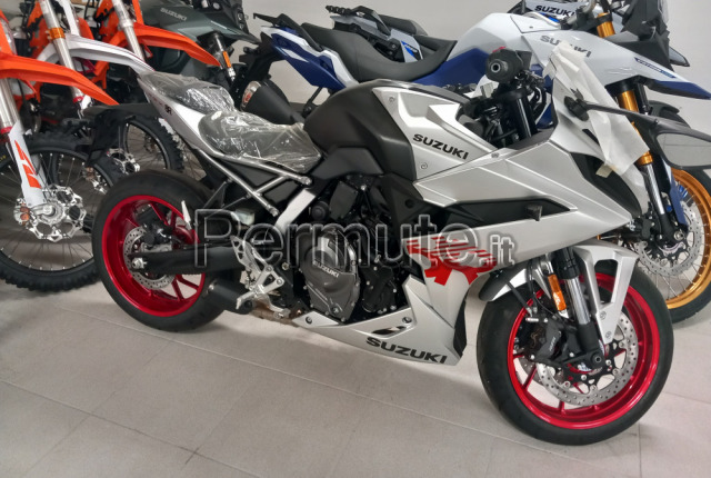 Vendo/Scambio Suzuki Gsx 8-R nov/2024, garanzia Suzuki, uniprò, perfetta, mai incidentata, usata solo da conducente senza passeggero, km. 5000, 1° tagliando Suzuki visionabile, gomme 70%, cupolino touring sportivo + originale, portapacchi, protezioni serbatoio, griglia radiatore, pellicola salva schermo, documenti in regola, tenuta in box privato.